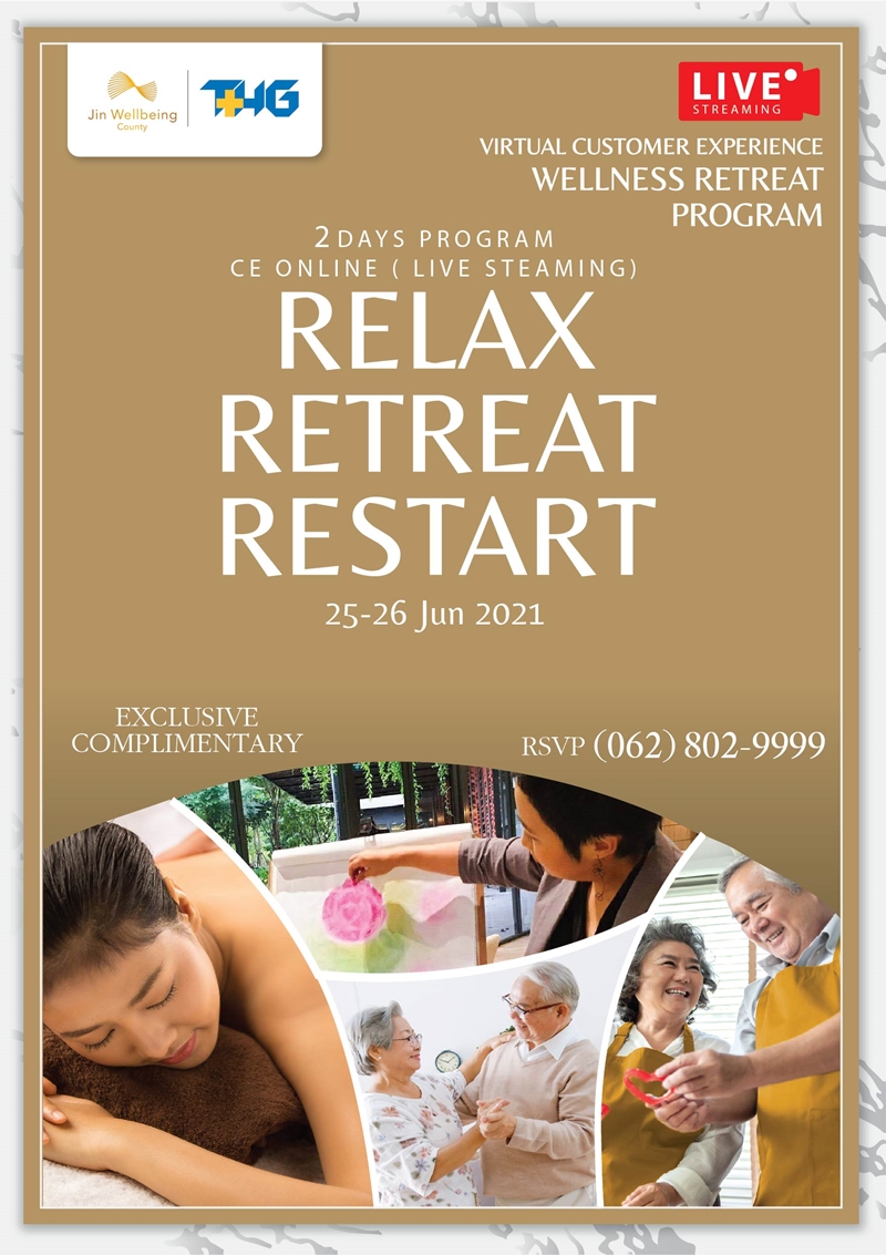 บมจ. ธนบุรี เฮลท์แคร์ กรุ๊ป หรือ THG สร้างประสบการณ์ใหม่โครงการ ‘จิณณ์ เวลบีอิ้ง เคาน์ตี้’ ที่พักอาศัยเน้นไลฟ์สไตล์สำหรับผู้สูงวัย เปิดลงทะเบียนเข้าร่วมกิจกรรม ‘Relax Retreat Restart’ สัมผัสประสบการณ์การใช้ชีวิตในโครงการฯ และร่วมทำกิจกรรมเพื่อสุขภาพ ในรูปแบบ Virtual ที่จะจัดขึ้นในวันที่ 25-26 มิถุนายน ตั้งแต่ 07.00-18.00 น. ผ่านระบบถ่ายทอดสดออนไลน์ (Live streaming) ที่สามารถสื่อสารกันแบบ Interactive พร้อมจัดโปรโมชั่นพิเศษมอบส่วนลด 3-5 แสนบาท สำหรับห้องขนาด 43 ตารางเมตร และ 63 ตารางเมตร